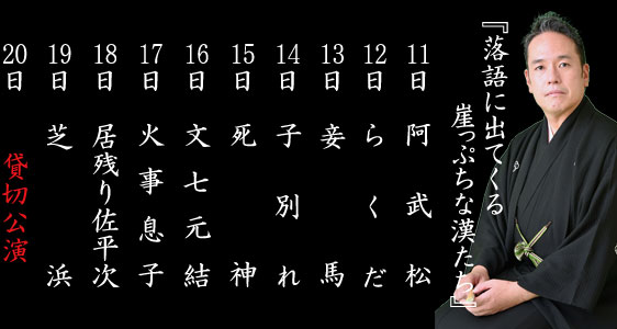 ※14日『子別れ』と16日『文七元結』は、膝前の演者とリレー落語になります。