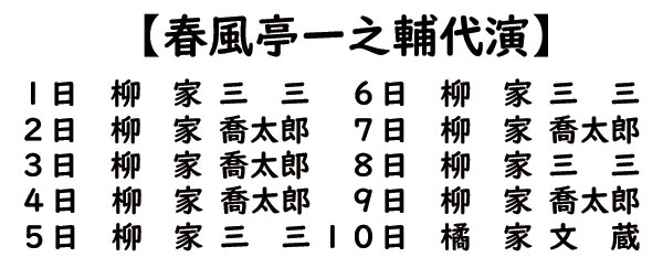 [5日 入船亭 扇 遊 代演][10日 春風亭 一 朝 代演]
