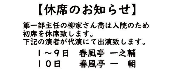 [5日 入船亭 扇 遊 代演][10日 春風亭 一 朝 代演]